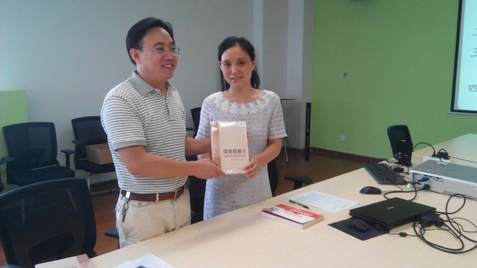 最后,语文组全体老师还进行一个简短的“教师悦读活动”启动仪式。由秦校长亲自为每位老师发放第一批适合老师们专业发展的、教师素养提升的专业性理论书籍,并寄希望与语文组老师为推动学校的阅读计划,有个良好开端,带个好头,并逐步向各教研组推进。