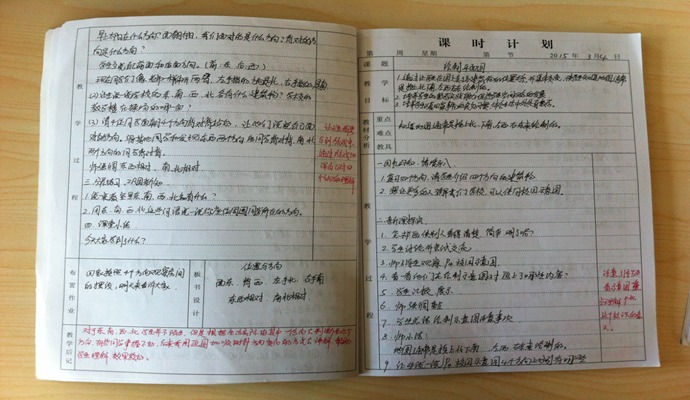3、特别是有的老师能结合学校提出的目标进行教学,并及时进行教学反思。根据个人教学情况进行二次备课并用红色笔记录下来,