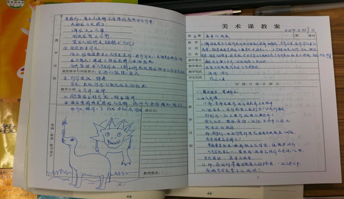 在备课教案的检查中,老师们基本上都能按照“学校教学管理条例”的要求去做,本次备课教案的亮点是: