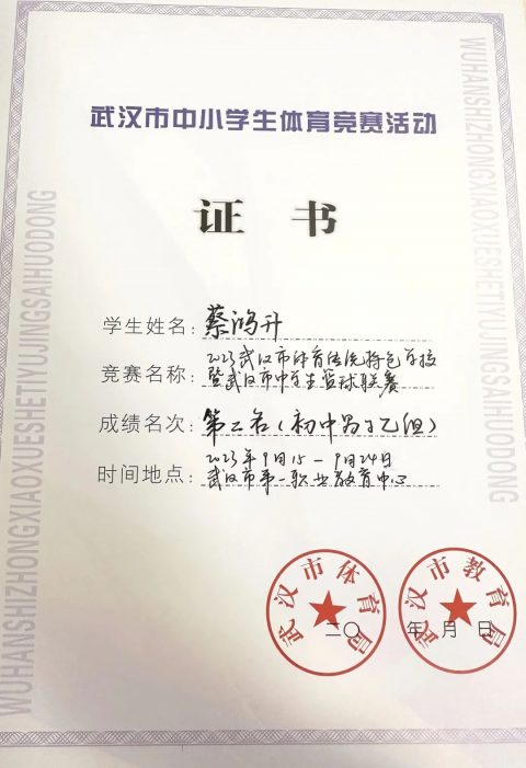 在由武汉市体育局、武汉市教育局共同举办的2023武汉市体育传统特色学校暨武汉市中学生篮球联赛中,优米娱乐app篮球队从9月15日至9月24日,一路过关斩将,勇往直前,展现出极高的篮球水平和团队协作能力,经过激烈的比拼,最终荣获全市第二名的好成绩。