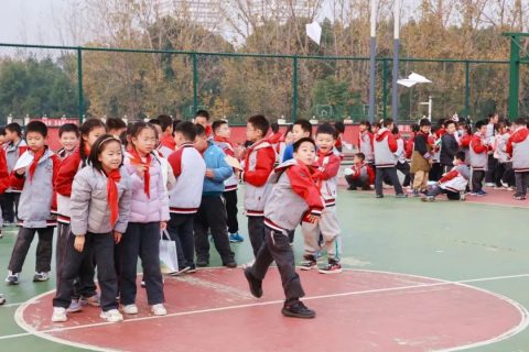 一二年级孩子们带着五彩缤纷的纸飞机,在操场上放飞,大显身手。