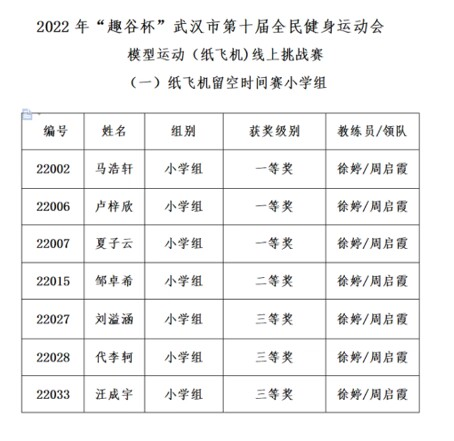 【活力综合组】喜报!小小纸飞机,放飞大梦想——我校学子积极参加武汉市第十届全民健身运动会纸飞机线上线下挑战赛并获得佳绩