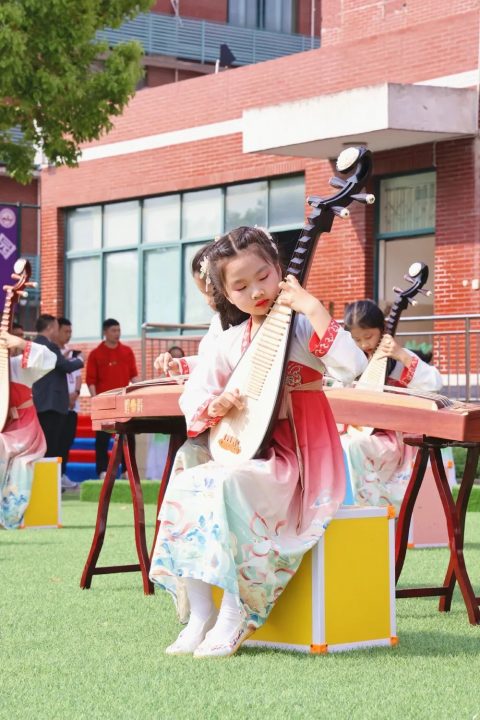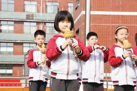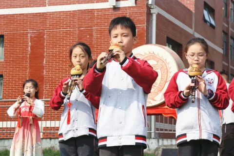 每个孩子都会一种乐器,落实我校“六个一”工程,全校葫芦丝齐奏。