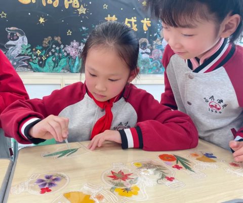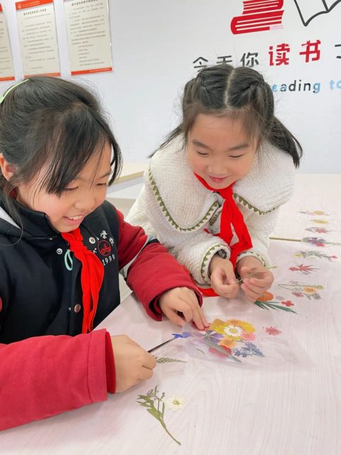 小学生用自己灵巧的小手做出一份份美丽的书签,想把春天留住!