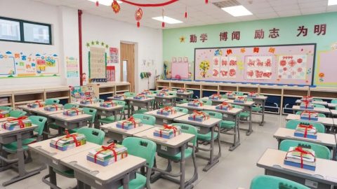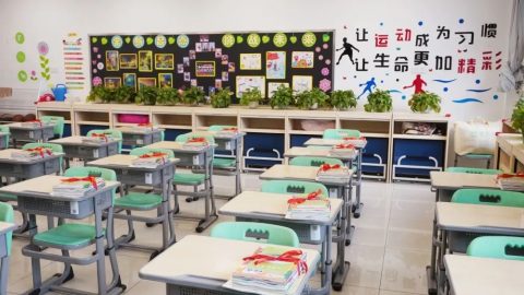 老师们已经将同学们的新学期教材领回班级,并将每本书都绑上了红丝带,祝福大家新的一年,学习进步,健康成长。