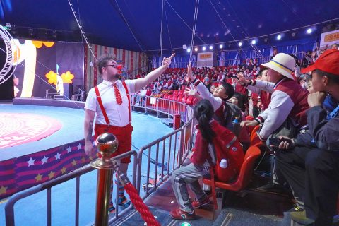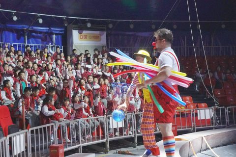 孩子们欣赏了一台惊险、刺激、欢乐的《环球大马戏嘉年华》。