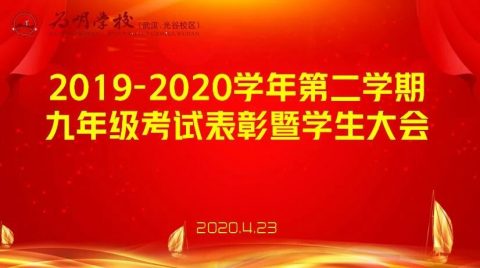 自疫情爆发以来,九年级学子们已在线上进行了三个月的学习和生活了。困难中突出重围,风雨里坚守梦想,百日誓师大会的豪情壮志仿佛还回荡在我们的耳边,青春的底色永远离不开“奋斗”二字。为鼓舞学子士气,我们在线上隆重举行2019-2020学年度第二学期九年级表彰大会,为奋斗中的学子们加油鼓劲,黄东校长、初中部领导和九年级全体学生参加了此次大会。