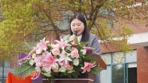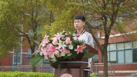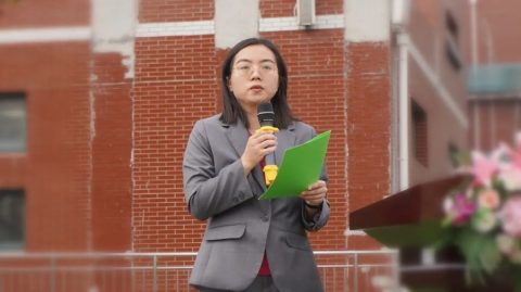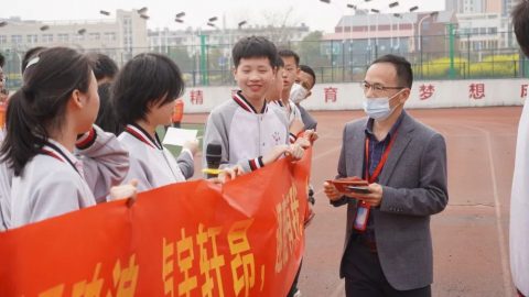 九(1)班的班主任尹俊老师进行发言,陪伴孩子们三年的尹老师道出了全体九年级老师的心声,她的眼眶闪着泪花,声声叮咛和句句嘱托温暖着孩子们,激励着孩子们,更振奋着孩子们。