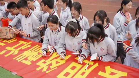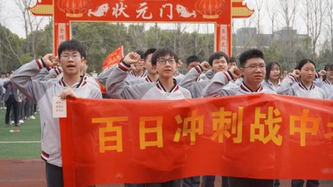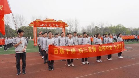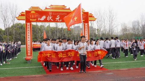 九年级全体学生依次过状元门并宣誓。同学们发自内心的呐喊让在场所有人都感受到了他们的决心和信心,相信在今后的学习中,无论遇到什么困难,多大的风雨,他们都会勇往直前,力争在人生征途上,留下自己坚实的足迹。