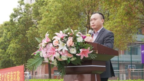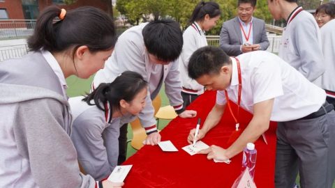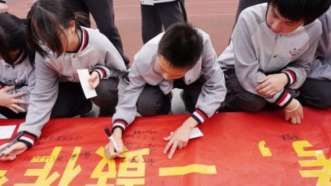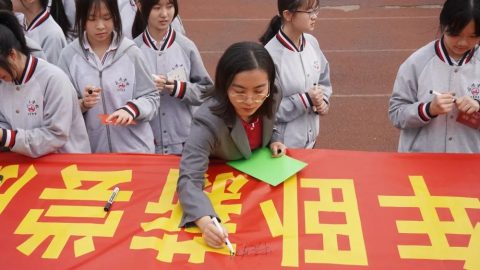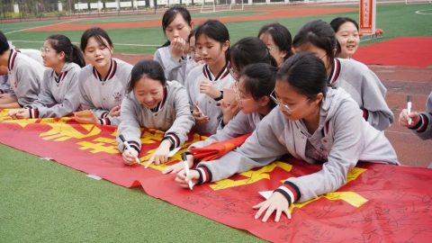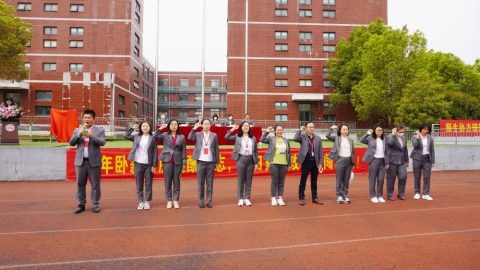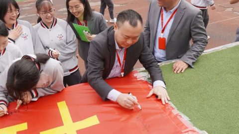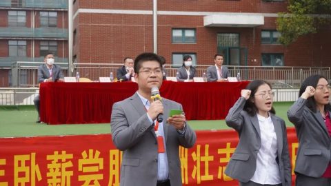 初中部王乐平校长带领九年级全体备考团队庄严宣誓:将与全体九年级学子一起同甘共苦,风雨同舟,挥洒汗水,奋战百天,决战中考!
