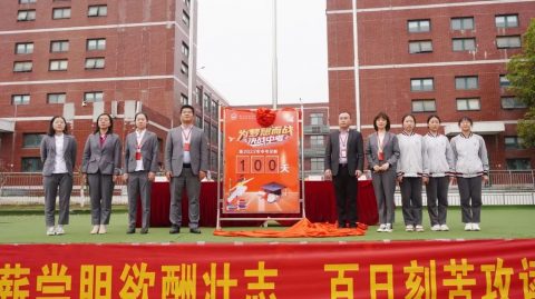 学校领导、九年级各位班主任和学生代表共同揭牌,开启中考百日奋战的航程!