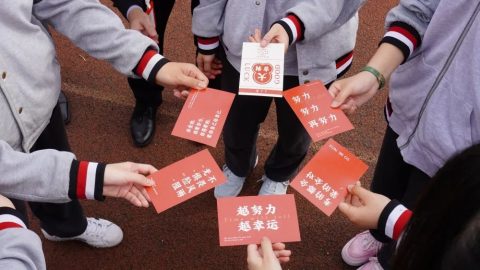 学校领导和九年级备考团队赠送给每位中考学子“私人定制”的祝福卡片。“越努力,越幸运”、“努力努力再努力”、“无惧险阻,无畏风雨”……一张张卡片象征着全体领导、全体老师、全体家长给九年级学子们的鼓励,只有不懈的努力和拼搏的汗水才是通往成功的唯一捷径。同学们收到领导和老师们亲笔签名的卡片,脸上洋溢着自信的笑容!