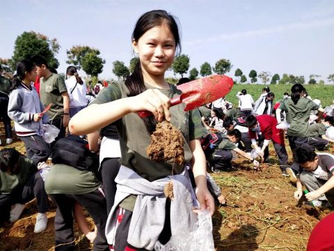 8点30分,同学们在教官及带队老师的带领下,带着愉悦的心情走出校园,井然有序地登上了大巴车,结缘橘子园,田园挖红薯,播种小树苗,体验一天的“开心农场”。一路上,歌声、欢笑声、朗读声洒满车厢。