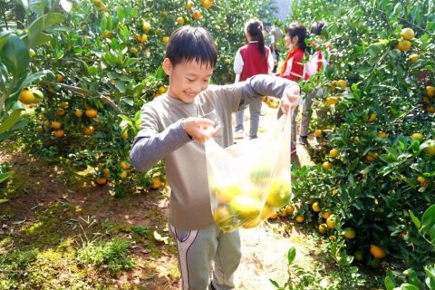 带着满满的收获,孩子们看到满山的桔子,脚步又变得轻快起来。教官跟孩子们介绍了桔子的成长过程和挑选桔子的秘诀之后,孩子们就迫不及待摘起桔子。你一口,我一口,在分享桔子的甜蜜之时,也体会到了摘桔子的乐趣。