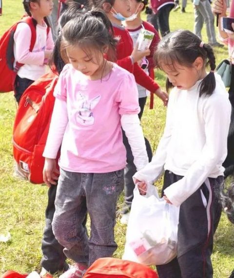 中午,孩子们在老师的组织下,席地而坐,三人一组,五人一群。一起分享零食,多了一份友谊的甜蜜味道。“留下脚步、留下欢乐、更留下文明。”午餐结束后,孩子们自觉捡拾地面垃圾,用实际行动呵护绿色,保护自然,彰显了为明学子绿色文明、积极向上的风采。