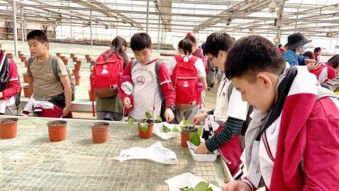 流着幸福的汗水,孩子们来到今天体验之旅的最后一站--种绿萝。孩子们走进大棚,在操作台两边整齐地排成两排,兴奋地开始种起属于自己的那盆绿萝。他们将绿萝叶子一根根小心翼翼地插进培养土里,远远看去,一盆盆绿叶密密麻麻堆在一起,显得苍翠欲滴,闪烁着光泽。