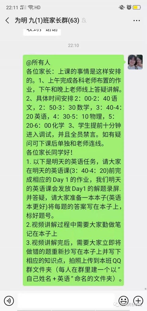 九年级全体学子在特殊时期始终保持镇定,用自己的学习热情积极响应学校和老师的号召,准时上线听课,课后认真完成作业。九年级的家长们纷纷为学校的贴心安排叫好点赞,为老师们的敬业奉献而感动。他们也积极行动起来:时刻关注老师发布的信息,提醒孩子准时上线听课,督促孩子完成作业。