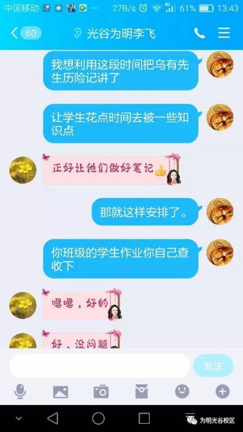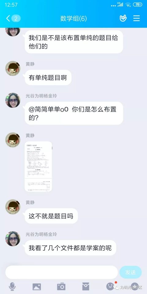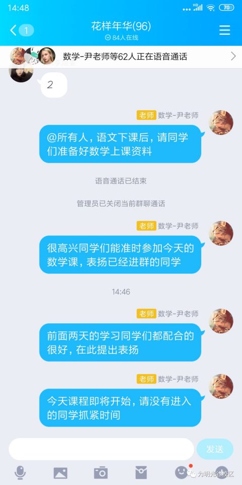 老师们通过QQ群共享桌面方式,利用PPT课件展示学习内容,更进一步讲解重难点,解决学生学习中存在的困惑。老师们还利用各种信息平台及时给学生提供预习、听课、小结、课后同步复习的内容、要求和方法指导,利用微QQ群每天给学生布置作业,完成后发群里检查,有问题及时讲解纠错,解决了学生及家长最大的顾虑。