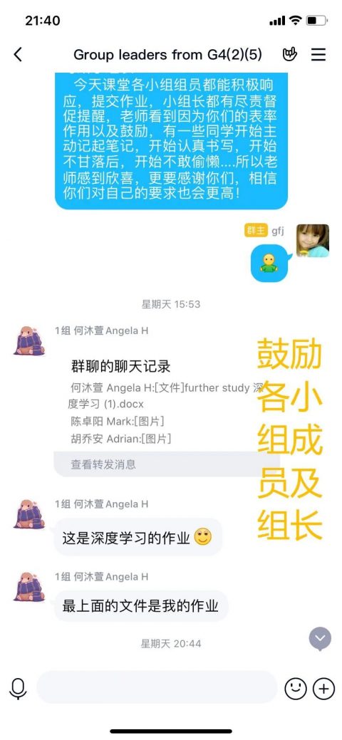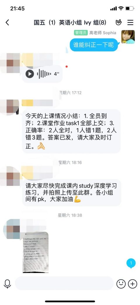 课堂上,适时放手,让学生成为主体。通过小组学习,Sophia老师欣喜地发现班上10岁左右的学生们已经展现出出色的领导力,团队凝聚力,越来越多的组员积极主动提交英语音频,随堂练习,发表观点。在彼此的督促下,小组PK的激励下,后进生也取得了可贵的进步。