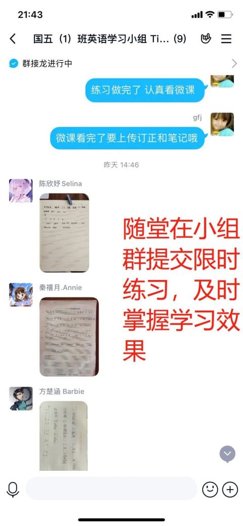 “英语课即将开始,请各位同学提前5分钟进英语小组群签到”
