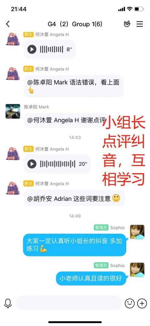 随着网课的开展,Sophia老师逐渐意识到一节语言学习课堂还需一些生与生间的互动交流学习,于是,成立英语小组的想法开始变为现实。