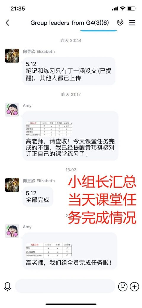 课后及时反馈总结,小组长们更是开始自制统计表反馈组内完成情况。