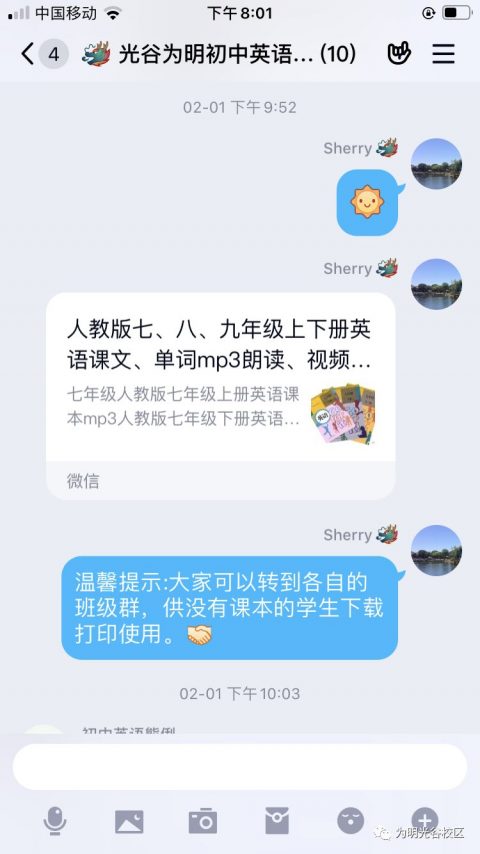 2月4日起,初三的教师就开始了QQ在线教学演示操作的学习,通过学习后心里的疑惑都减轻了许多,也对接下来的实战充满了信心。为了上课前大家都能充分准备,老师们收集了七八九年级的电子课本,各种教辅资料的电子档,教师用书的电子档,大家互帮互助体现了数学组集体力量的强大。