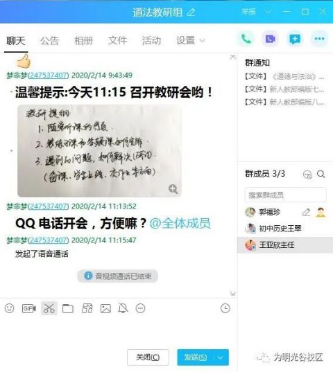 为了能够达到最好的教学效果,组内老师争分夺秒地进行研究,掌握了多种用于QQ群教学的网络技术手段,确保能够顺利开展网络教学。
