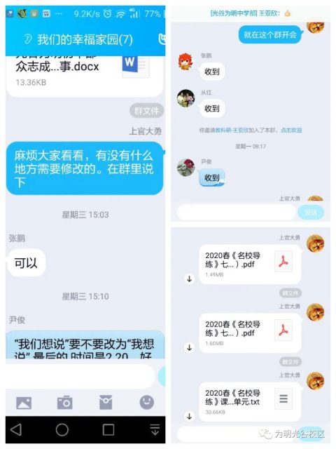 经过多次的教学研究与实践,老师们发现:个别学生在家学习需要提醒督促,这会使学习的有效性大打折扣。老师们针对此问题进行了深入研讨,对部分学生“人在线,听课溜号”的现象,就经常对该生连麦交流,频繁互动,增加学生的注意力,并要求学生提前预习,对所学知识有一定的了解,增加学习的内动力。针对个别学生作业上交不及时的情况,直接联系学生,和家长配合提高效率,通过各种办法提高学生的学习积极性。