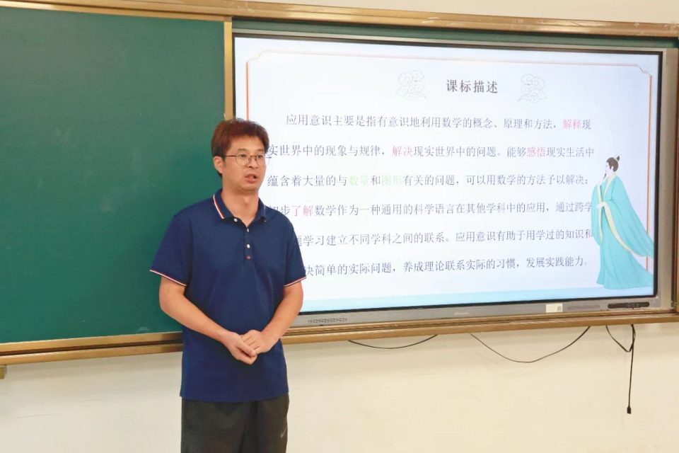 数学组的刘松柏老师睿智启幕,他以《2022版新课标》为指南,巧妙剖析应用意识的精髓,举课本实例,层层递进,解读应用意识的内涵、表征与价值,更着重勾勒出培养应用意识的实践路径。