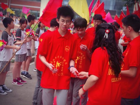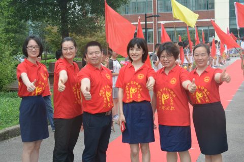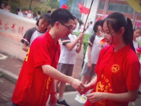 红旗象征着中考的胜利,象征着希望,象征着无限光荣与梦想!王乐平主任将手中的红旗,郑重交给2018届中考教师代表王亚欣主任,代表着光谷为明首届中考创造的辉煌;来到2019,象征着中考胜利的红旗继续传递,2019届中考教师代表杨梦珠老师接旗,预示着本届中考定将不负众望,续写辉煌。无言中传递的,是光谷为明奋斗精神的不息薪火,是为明人的沉甸甸的责任和崇高的教育理想!