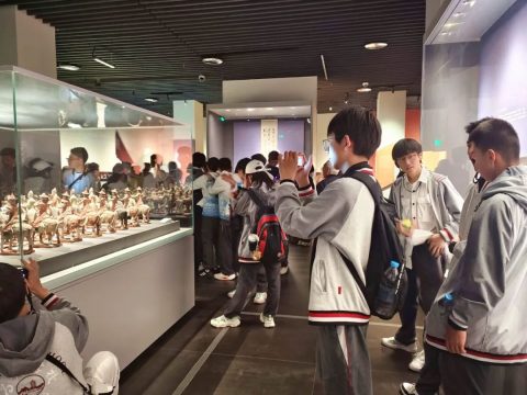 西安博物院,一座建在古迹寺庙里的博物馆,由博物馆、唐荐福寺遗址、小雁塔三部分组成,以“古都西安”为主题、一千多年建都史为主线,讲述了西安都城的发展史和光辉灿烂的中华文明。同学们置身馆内,去寻找沉睡千年的唐三彩与仕女俑,追寻千年前的盛世长安,感受唐人的自信开放和包容。