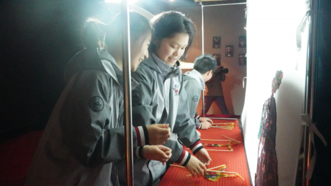 驱车前往秦风苑小剧场,感受老腔的文化魅力,欣赏皮影戏、木偶戏,领略古老文化的价值。同学们踊跃登台亲身体验,现场气氛热烈,台下观众喝彩连连。通过认识秦腔的起源,同学们发现了古老文化的价值,感受到了陕西人的豪放、自信和豁达,提升了同学们的兴趣,丰厚了同学们的人文情怀。