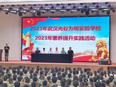 军训开营仪式在武汉中小学校外教育活动中心隆重举行。开营仪式由活动中心教官主持,七、八年级全体师生500余人、10余名教官、学校领导及活动中心的负责人参加了开营仪式。