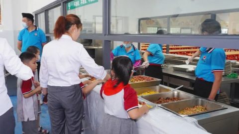 食堂的饭菜美味可口,营养均衡。
