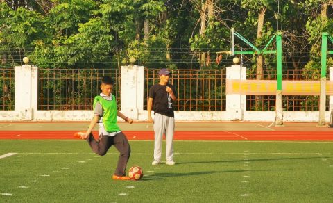 八(3)班潘相志同学告诉老师:“我从7岁开始踢球,到现在已经踢了7年了,我在场上的位置是前锋,在场上,我需要更积极地拼抢,这也让我在学习和生活中养成了积极拼搏的习惯,我特别喜欢踢足球。”