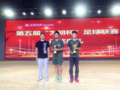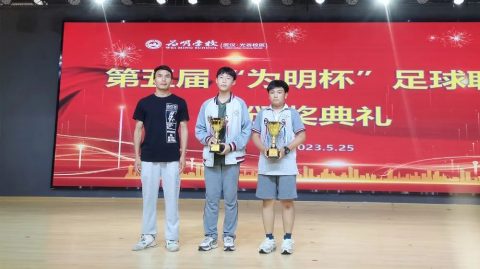 2023年5月9日,光谷为明初中部第五届“为明杯”校园足球联赛正式开赛。本次比赛分设七年级男子组、八年级男子组2个组别,在8个比赛日里进行了8场激烈角逐,最终七(1)班、八(3)班分别荣获七年级组和八年级组第一名,七(1)班董泽宇同学、八(3)班潘相志同学分别荣获七年级组和八年级组“最有价值球员”。