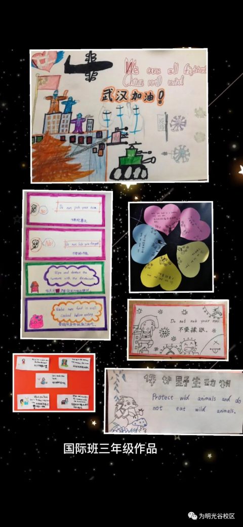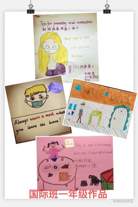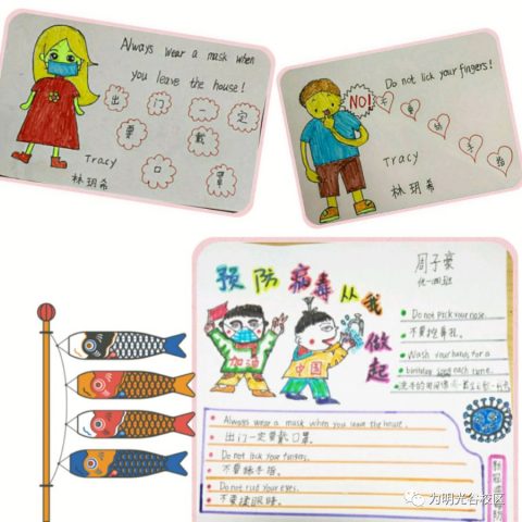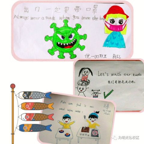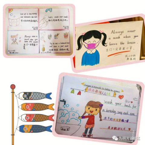 与此同时,全校也开展了一次制作英语防疫小贴士的活动,孩子们将自己制作的小贴士贴在家里的各个地方,既让孩子们运用了英语知识,也起到了防范疫情的需要。