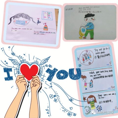 有的孩子还录制了微视频,利用家中的道具,将所学的防疫小贴士用英文表达了出来,向大家展示了在疫情期间如何做好个人防护,同时也传达了对武汉的美好祝福。