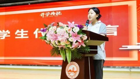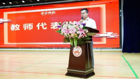 盛宏涛老师作为教师代表希望全体初中生在新的学期树立新的目标,不断挑战自己,在学习中遇到了困难不要怕,主动寻求老师的帮助,用脚踏实地的努力做最优秀的自己。