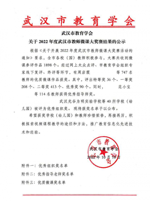 为进一步实现优质教育资源共享,促进武汉市基础教育教学资源多元化、优质化发展,探索信息技术环境下教与学的新模式、新方法,武汉市教育学会联合在线教育平台,在今年暑期开展了2022年度“武汉市教师微课大赛”活动。