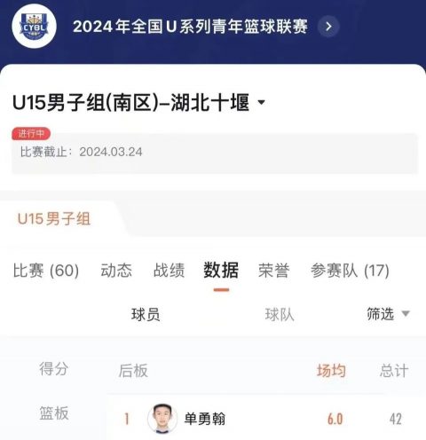喜报:热烈祝贺我校901班学子单勇翰在2024全国U15青少年篮球联赛(南区决赛)中荣获“篮板王”称号!