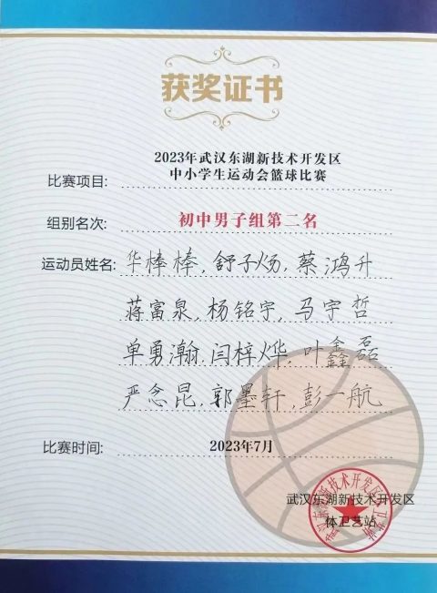 喜报——我校荣获2023年东湖高新区中小学生运动会篮球比赛(初中男子组)第二名