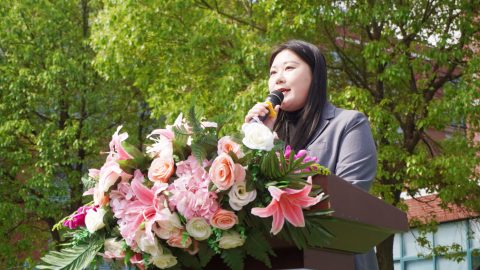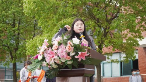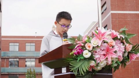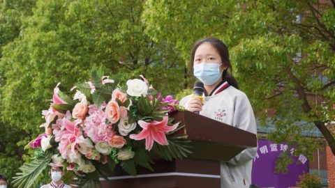 来自八(3)班的张瀚文同学作为新团员代表进行发言。他感到无比激动和荣幸,他说:“共青团给了我们更高的理想,我们不能放慢脚步。今天也必将成为我们每个人自己人生道路上的一次更新、更高的起航。我们将在团组织的带领下,努力拼搏,奋发进取!”