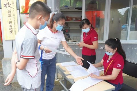 8月10日,武汉市全体初一、初二学生正式返校复学,我校也迎来了期待已久的孩子们的身影,他们手拿健康返校承诺书,有序接受体温检测。在校门口负责迎接的每一位志愿者老师都主动接过家长们手中孩子们的行李,并护送到寝室,请家长放心,在这里,除了有每一位老师的温情期盼,还有《学习抗疫精神,奋力冲刺未来》的返校复学第一课,让所有的学生以最好的状态迎接返校复学后的学习生活。