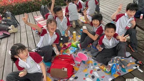 午餐时间到,同学们一起分享美食,其乐融融。