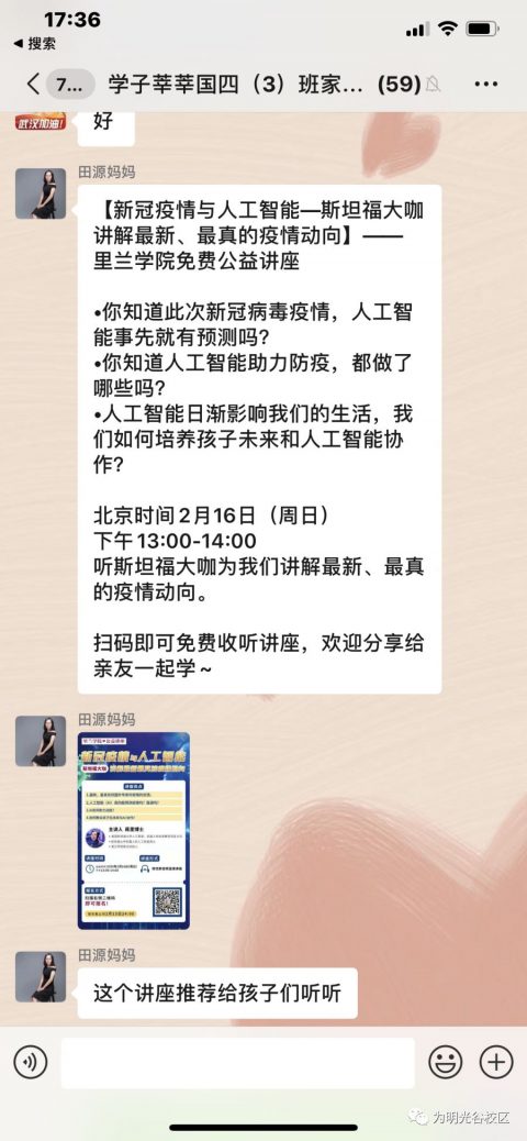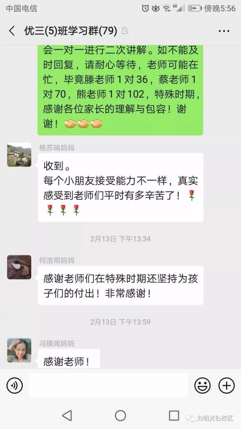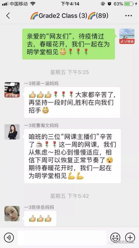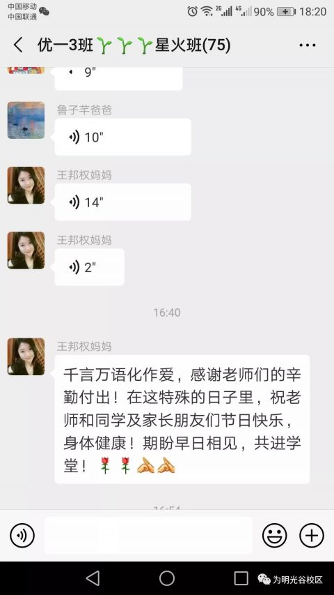 在抗击疫情攻坚时刻,光谷为明实验学校班级群也涌现了“最美逆行者”,激起了孩子们深深的敬意。