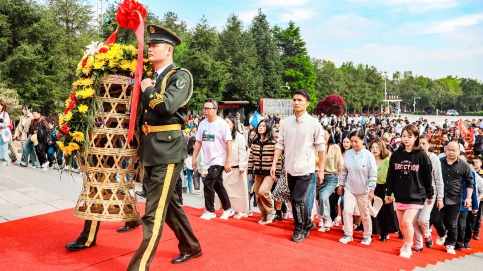 研学第二天,九点我们到达铜像广场,此铜像基座高10.1米,象征着“10.1”国庆,更象征着毛泽东是新中国的缔造者。随着歌曲的奏响,献花仪式正式开始。我们庄严肃立,缅怀先烈,深深地向着铜像鞠了三躬。站在这里,我们更加深切地体会到了历史的厚重和文化的瑰丽,也更加坚定了前行的步伐。