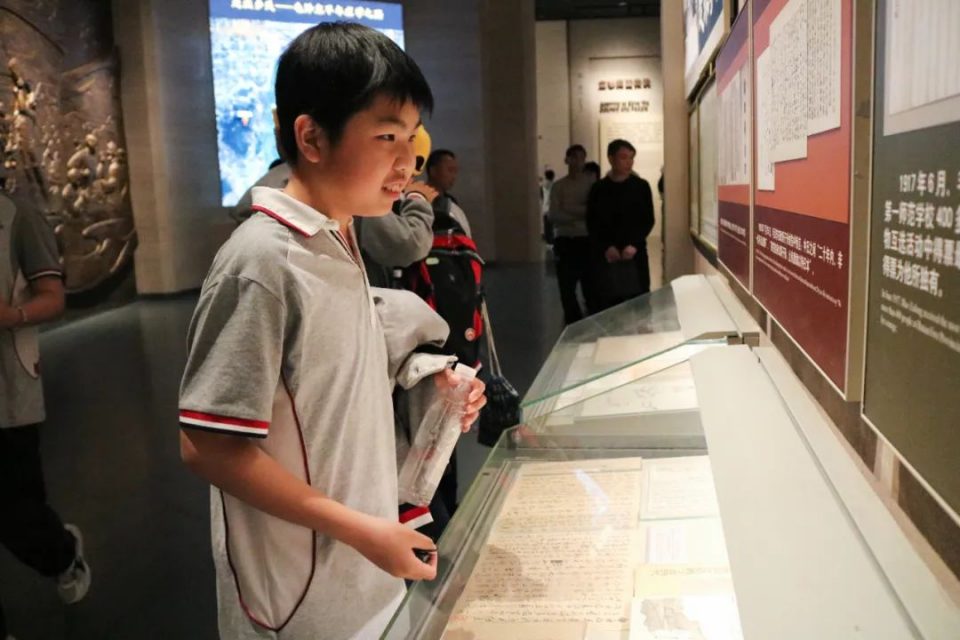 同学们跟随导游们的脚步,认真听着讲解,了解了毛主席的幼时趣事以及成长经历。