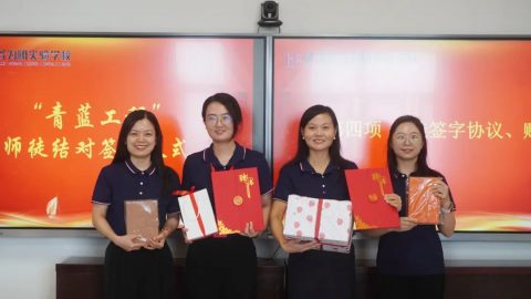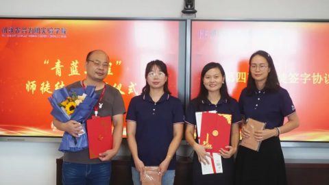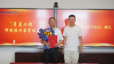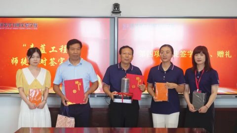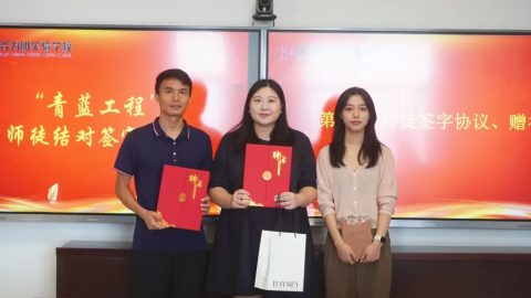 师徒签署《“青蓝工程”师徒协议》,并互赠礼物。礼物是一份美好的祝愿,更是一份美好的期许,让我们一起带着崭新的力量期待明天,带着终身学习的态度教书育人。